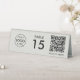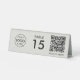 A simple custom gray QR code resturaunt or cafe table tent table number double sided business sign template in a modern minimalist style which can be easily updated with your company logo, QR code and custom text.