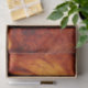 This design features a painting by the American artist Abbott Handerson Thayer (1849–1921). It depicts a powerful lion at rest. The lion's mane and fur are painted with beautiful shades of red, orange and yellow, creating an impressive effective. The lion's eyes are watery as it stays on the alert, watching out for prey or other aggressive animals. Its whiskers can be seen growing from its cheeks.