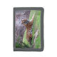 A simple nylon wallet that seems very durable. The design on front (Reiki) is very special. The red color of the wallet is attractive. Very satisfied with the print.