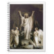 Jesus with arms outstretched as he walks out of the tomb. Angels with hands clasped in worship. Artwork by Carl Bloch
