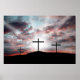Put your own themed words on this beautiful image that symbolizes Christ's resurrection from the cross. Three crosses on a hillside with dramatic lighting in the clouds.