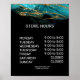 Retail store opening times sign