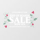 Retail sale signage banner, inform customers of Christmas sales with this end of season Sale Sign window cling banner in white with graphic green and red holly leaves and berries. Ideal to generate business and alert passing customers of shop and retail store sales end of season Christmas stock sales. Customize with your own business name. Matching posters are also available. Designed by www.mylittleeden.com