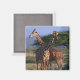 The reticulated giraffe is among the most well-known of the nine giraffe subspecies , and together with the Rothschild giraffe it is by far the giraffe most commonly seen in zoos . Its coat consists of large, polygonal liver-colored spots outlined by a network of bright white lines. The blocks may sometimes appear deep red and may also cover the legs. The extraordinary height of giraffes is attributed to a ritual known as "necking" where two males fight for reproduction rights by slamming their necks into one another. The giraffes with the tallest and strongest necks are victorious and allowed to reproduce, thus passing these genes on to future generations.