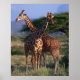 The reticulated giraffe is among the most well-known of the nine giraffe subspecies , and together with the Rothschild giraffe it is by far the giraffe most commonly seen in zoos . Its coat consists of large, polygonal liver-colored spots outlined by a network of bright white lines. The blocks may sometimes appear deep red and may also cover the legs. The extraordinary height of giraffes is attributed to a ritual known as "necking" where two males fight for reproduction rights by slamming their necks into one another. The giraffes with the tallest and strongest necks are victorious and allowed to reproduce, thus passing these genes on to future generations.