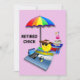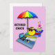 Retired chick at the beach, living the good life. Cute chick donning sunhat and sunglasses, ready for a relaxing fun-filled day. Humorous and super cute!