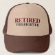 Cap for retired firemen. Text can be customized to say anything you choose. Great gift for a retiring fire chief or firefighter.