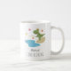 This cute humorous "Retired, Gone Fishing" Mug features a cartoon illustration of funny Dinosaur. Dino stands besides the water holding the fishing rod and awaiting for the big fish. Illustration is done in warm summer colors: green, yellow, and soft blue. This Mug could be a great gift for dad, grandpa, brother on the occasion of their retirement, especially if he is a fishing fan. You can easily personalize the text using Zazzle online tools.