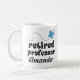 Stylish occupation design says Retired Professor with cute blue butterfly logo and room for a personalized name.