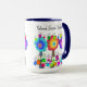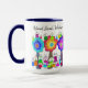 Retired Social Worker Mug with adorable whimsical birds and trees. Bright, bold colors and a fun design created especially for social workers.