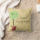 Beautiful Retired Social Worker Pillow, artsy pillow designed using a layered effect of translucent script background and artist drawn potted tree with falling leaves, background color of pillow is light gold. "Retired Social Worker" on the front. Back of pillow is color coordinated with artist drawn yellow daises. Makes a memorable and lasting gift sure to be treasured.
