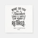 Funny retired teacher saying that's perfect for the retirement parting gift for your favorite coworker who has a good sense of humor. The saying on this modern teaching retiree gift says "What Do You Call A Teacher Who is Happy on Monday? Retired."