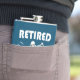 You're retired and the only work you have to do is to go skiing. This great design has a skier with bold text.