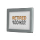 Retired! Woo Hoo! Funny saying on t shirts, stickers, mugs and more. Original design.
