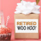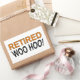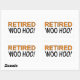 Retired! Woo Hoo! Funny saying on t shirts, stickers, mugs and more. Original design.