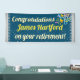 Perfect banner for your retiring co-worker, boss, or friend. A blue background with confetti stars personalized with the retiree's name.