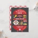 A red kettle bbq grill with all the goodies for your retirement barbecue party. Customize with your own text. Barbeque items include: hot dog, hamburger, chicken, corn, paper plate, banners, ketchup, beer bottle, fork & knife. Background has a black wood grain background. The back of the card features a cute picnic gingham tablecloth. Original Illustration by pj_design.