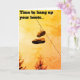 "Time to hang up your boots" retirement card, with "Happy retirement" message inside. Features an image of a pair of trainers hanging from a phone line.
