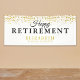 This banner is perfect for any retirement party. The design is accented with gold glitter confetti on white background.