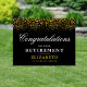 This yard sign is perfect for any retirement party. The design offers faux gold glitter confetti on a black background and is accented with elegant script text.