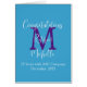 This elegant minimalist Retirement Congratulations greeting card has a sky blue background, purple monogram, and white script text. Easy to personalize, just change or delete example name, monogram, your text, and front and inside text. All Rights Reserved © 2025 Alan & Marcia Socolik.