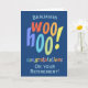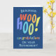 A fun and bright way to congratulate someone on their retirement. This fun card features the text 'woo hoo! Congratulations on your retirement'. Can be personalized for any name and occasion.