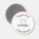 A novelty keepsake magnet with words 'Congratulations On Your Retirement' in script typography. Two elegant glasses of sparkling champagne are pictured for a celebratory look. The design is mostly white, with black text and a faux gold band around the edge. Personalize with the recipient's name for an individual finishing touch.