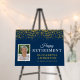 This foam poster is a perfect way to say congratulations for any retirement party. The design offers a vertical photo frame and is accented with gold glitter confetti on dark blue background.
