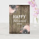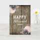 Lovely and elegant fonts say "Happy Retirement!" . Inside the card is adjustable text with a statement of congratulations. Rustic wood background texture with pink and gray flower elements.