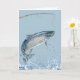 Big salmon fish jumping out of blue water with fishing pole for retirement on white.