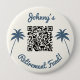 Elevate your retirement celebration with this personalized QR code button! Featuring a design with two blue palm trees and the text 'Johnny's retirement fund!', this button allows guests to scan the QR code and contribute to the retiree's special fund. Make a meaningful contribution to honor Johnny's retirement journey!