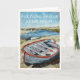 A retirement good wishes card with a small boat, moored up on a sandbank, from a soft pastel painting by Judy Adamson.
