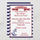 Fun and colorful red,white and blue nautical themed Retirement invitation or annoucement. Graphic art design features a festive ribbon with the word retirement. Attractive blue and white stripped background with an red accented border insert. Included is a blue nautical anchor. Invite your friends to a surprise retirement party, retirement luncheon, or retirement celebration. Great for nautical themed events, sailors, Navy retirement, Marine Retirement and more.