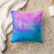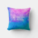 The pillow has an elegant colorful watercolor background with vivid colors: electric pink, blue, and green, along with touches of white.