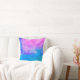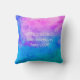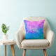 The pillow has an elegant colorful watercolor background with vivid colors: electric pink, blue, and green, along with touches of white.