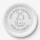 Paper plates to celebrate a retirement or long service award party. Retirement party plates. Employee or staff member retiring from work. Design includes the name of the person as well as company or business. Also the number of years.