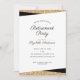 This retirement party invitation offers a professional white background accented with black and faux gold glitter across the top and bottom. Custom text allows you to add your retirement party details.