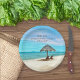 A tropical beach design that can be personalized with your name and message. The retiree's name has been set in popular and contemporary typography. The text "Congratulations on your retirement" is set in a hand written script font, and this message can be customized with your own message or kept "'as is". The dark brown text color can be changed in the Edit Menu.