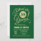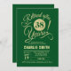 Retirement party invitation in dark green and faux glitter gold. Elegant typography script font. Can be personalized into any year.