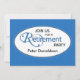 An elegant invitation to a retirement party can be sent to friends and family when someone retires. Royal blue background sets off the oval message area with script details.