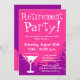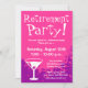 Retirement party invitations | Custom invites for guests. Personalizable announcement text and background color. Cocktail glass design with hot pink colors.