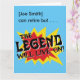 Fun retirement party card for a hilarious last day before retirement. [Name of retiree] can retire but the legend will live on! Customize the name of your retiree. Or customize the other text too, to adapt for any kind of goodbye party. Plenty of room for everyone in the office to sign on this big card.