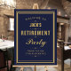 A stylish retirement party welcome sign can be personalized with your special event information in gold text on a navy blue background. Designed by Thisisnotme©