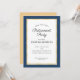 This retirement party invitation offers a sleek professional layout with a navy blue border accented with a thinner gold border. Custom text allows you to add your retirement party details.