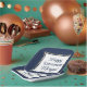 Add an elegant touch to retirement party decorations with custom navy blue, white and gold square paper plates. All wording is simple to personalize. The design features a faux foil border, modern script calligraphy message, and stylish vintage typography years of service with business or company name. It can be customized for any occasion or to include a favorite quote or funny saying. Please note that gold is printed color, not metallic foil. The minimal classy design has a professional look suitable for him or for her, a retiring coworker, employee, friend or family member. Congratulations and Happy Retirement!
