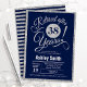 Retirement party invitation for women or men. Elegant invite card in navy with faux glitter silver. Features stylish typography script font. Can be personalized into any year. Please message me if you need further customization.