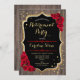 Retirement Party Invitation. Rustic design with faux glitter gold. Features red roses, stylish script font, dark brown barn wood pattern and confetti. Perfect for an elegant retirement party. Customize with your own details.