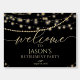 Retirement Party Sign, retirement welcome sign, Retirement Celebration Party Welcome Sign, Retirement Decoration, Retirement Decor. Wedding Welcome Sign, bridal shower decor, Engagement sign, engagement party, Rehearsal Sign, Retirement Decor, Retirement Party, Retirement Sign, Retirement welcome, Black and gold, Gold Confetti, rehearsal decor, String light decor