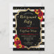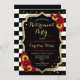 Retirement Party Invitation. Elegant floral design with sunflowers and red roses. Features script font, faux glitter gold, black & white stripes and confetti. Perfect for a stylish retirement party. Customize with your own details.
