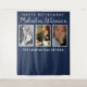 'Through the Years' retirement party photo collage backdrop banner showing the retiree at different stages of their life. Use as a backdrop for a dessert table, candy bar, or buffet table as part of your retirement party room decorations then it can double as a photo booth backdrop later in the evening.